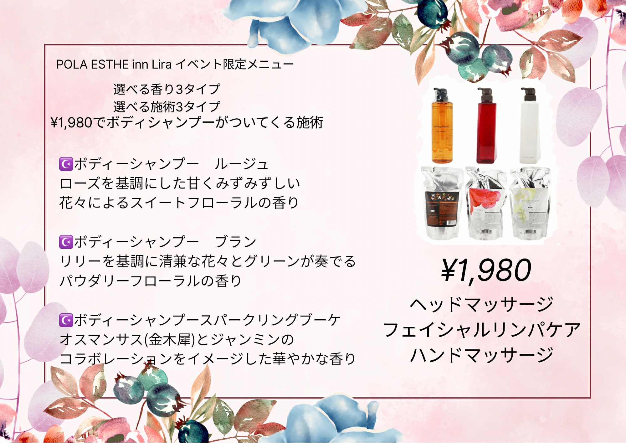ハンドマッサージ 各1,980円(ボディシャンプー付)
